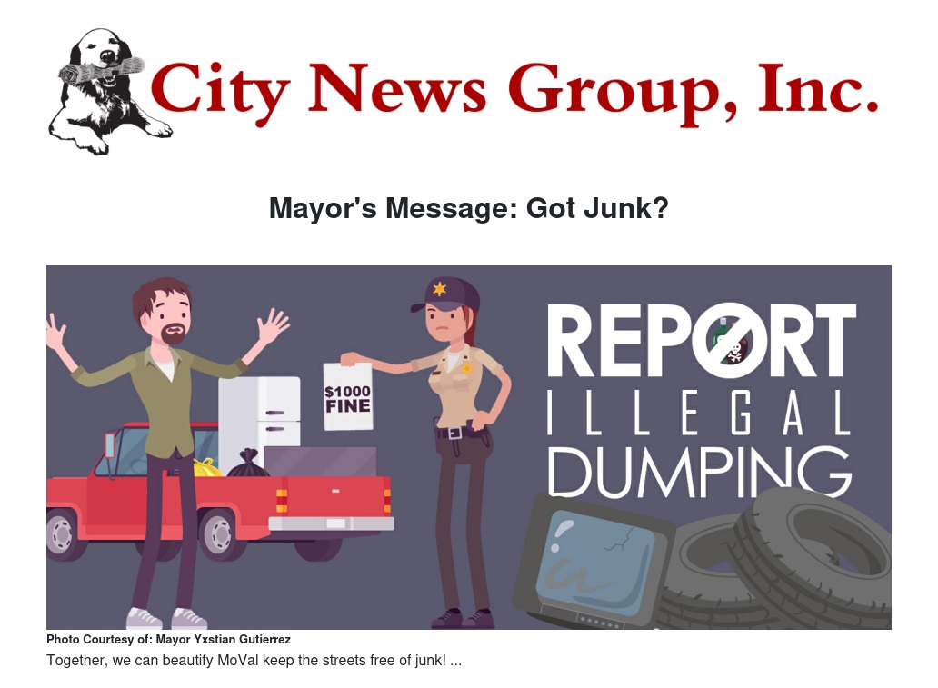 Mayor's Message: Got Junk? by Mayor Yxstian Gutierrez - City News Group, Inc.