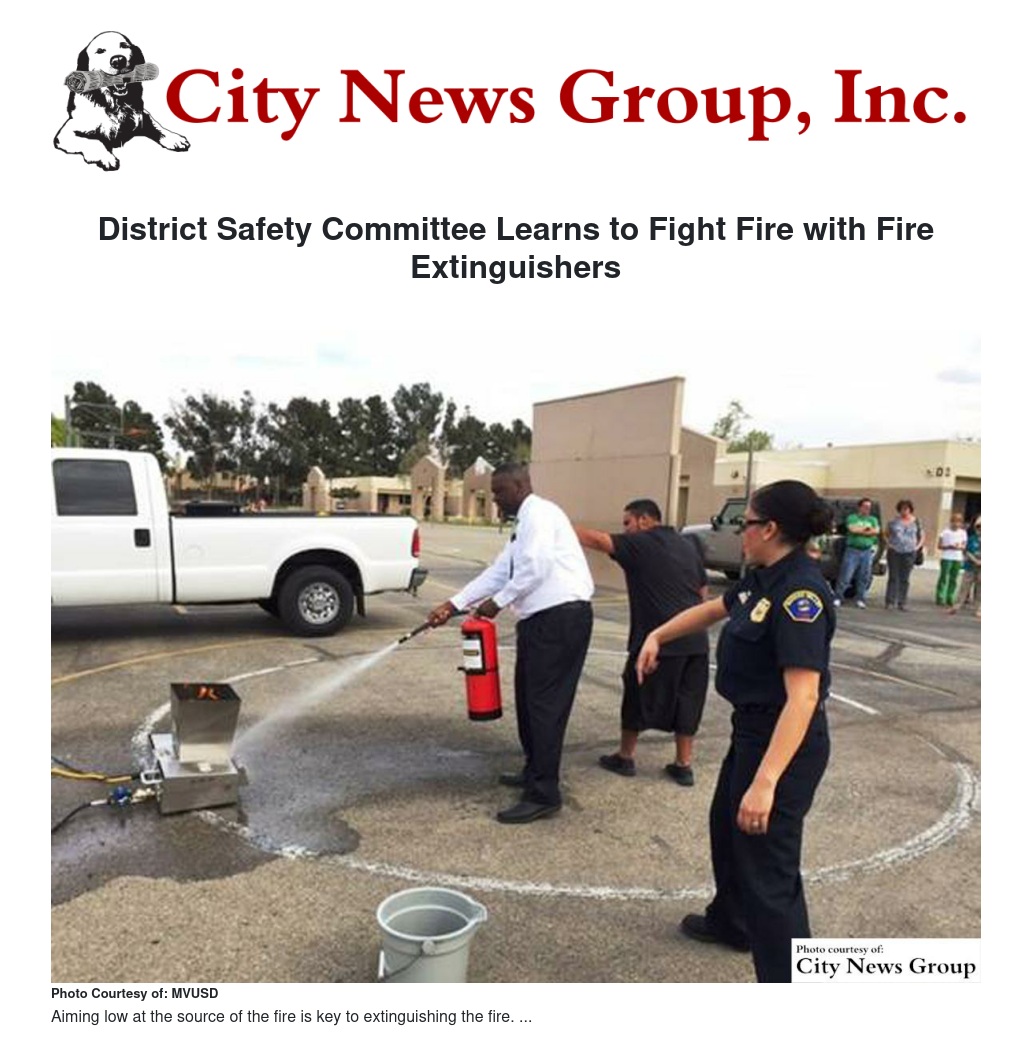 District Safety Committee Learns to Fight Fire with Fire Extinguishers