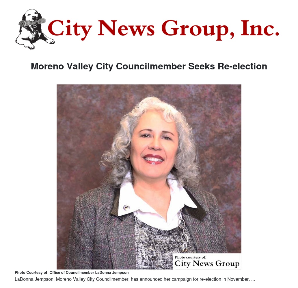 “I have faith that the residents of District 1 in Moreno Valley will grant me the opportunity to serve a full, 4-year term by selecting D. LaDonna Jempson on the Nov. 8 ballot,” Jempson said.