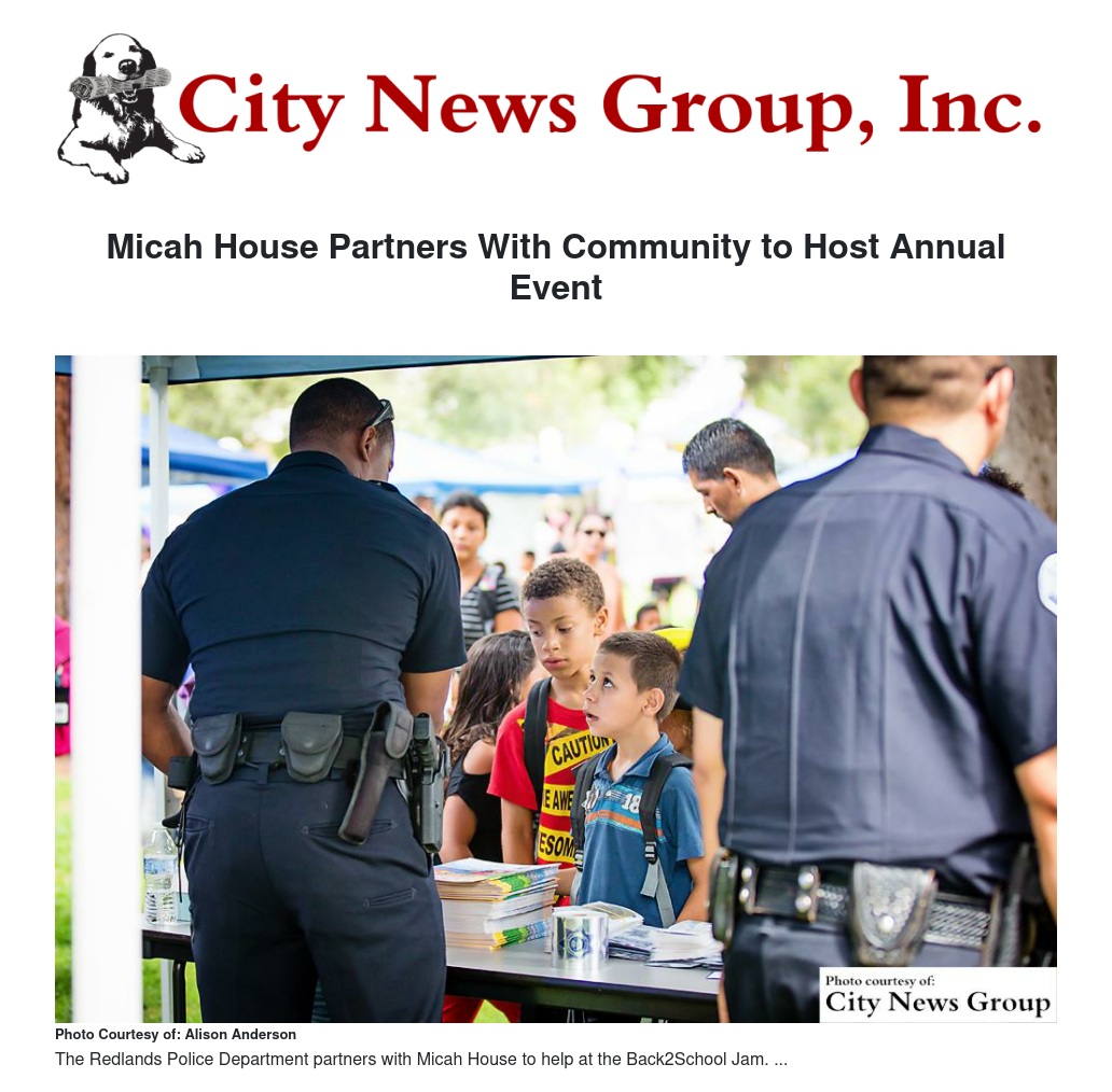 REDLANDS>> Micah House in Redlands is partnering with the Redlands Police Department, as well as help from local businesses, churches, community groups and city and county agencies around the city for the 9th annual Back2School Jam and Community Resource Fair Aug. 6 from 9 a.m. to noon at Sylvan Park.