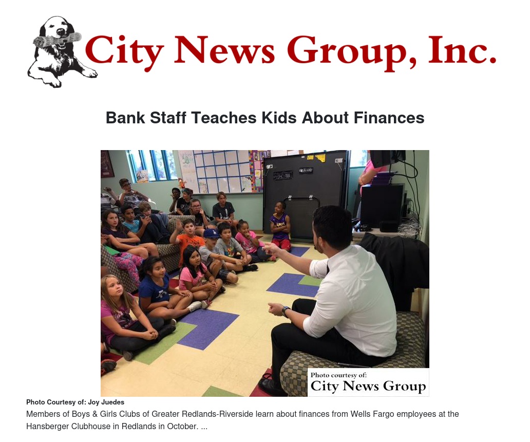 The employees volunteered to hold workshops in October and earlier this month at Boys & Girls Clubs of Greater Redlands-Riverside’s sites around the Inland Empire. Wells Fargo uses a curriculum that teaches youth the basics of responsible money management, including how to create a budget, save money and spending on needs versus wants.