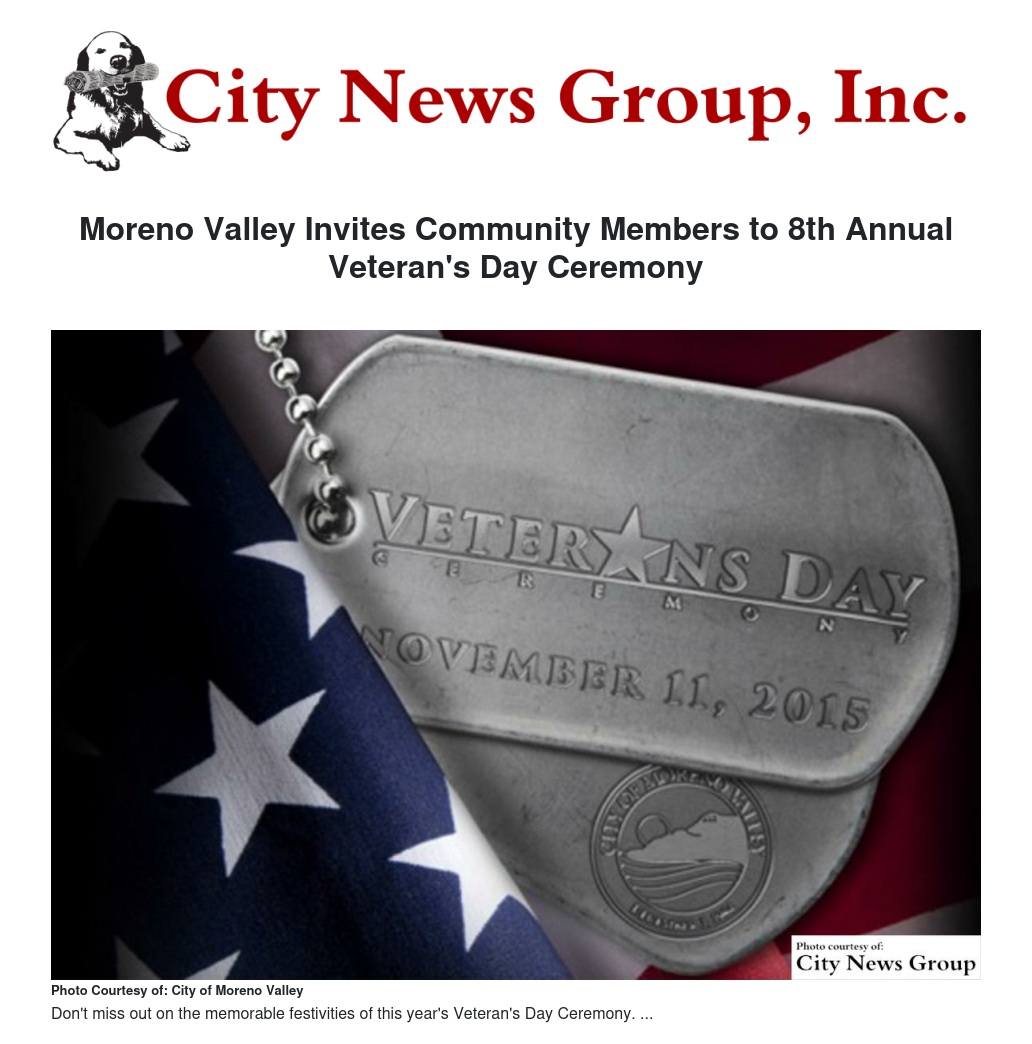 Moreno Valley is holding their 8th Annual Veteran’s Day ceremony held at the Moreno Valley Civic Center on Wednesday, Nov. 11 at 3:30 p.m.