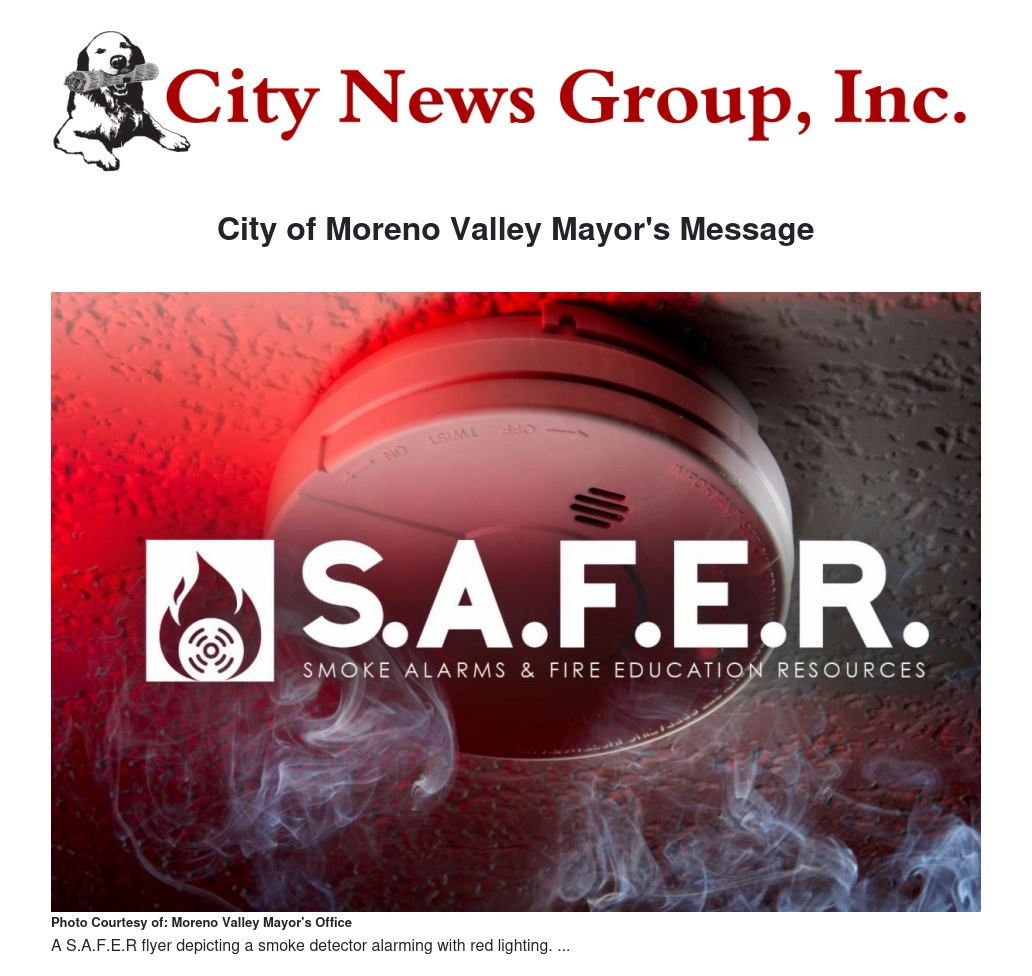 These numbers are alarming, but fortunately, the City of Moreno Valley is here to help. As we continue our month-long focus on public safety, I wanted to personally highlight another valuable resource that the City of Moreno Valley offers to our residents to help them keep their homes and families better protected: our Smoke Alarms & Fire Education Resources (S.A.F.E.R.) program.