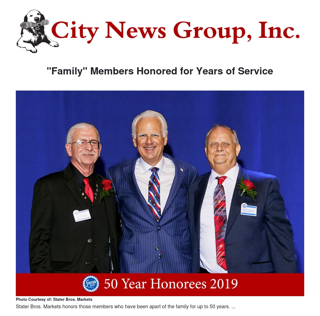 “I am proud that so many employees have chosen to make Stater Bros. their career. It has been said that you judge a person by the company they keep … and a company by the people they keep. In my 40 years in the grocery industry, I’ve never seen such a loyal team - dedicated to the mission of serving their Company, customers and community – like our Stater Bros. ‘Family’,” stated Pete Van Helden, CEO of Stater Bros. Markets. “We are proudly celebrating nearly 83 years of serving our ‘valued’ customers and this is because of the hard work and dedication of our loyal ‘Family’ members,” he concluded.