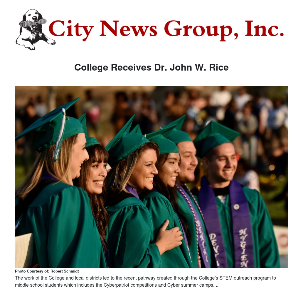 The work of the College and local districts led to the recent pathway created through the College’s STEM outreach program to middle school students which includes the Cyberpatriot competitions and Cyber summer camps.