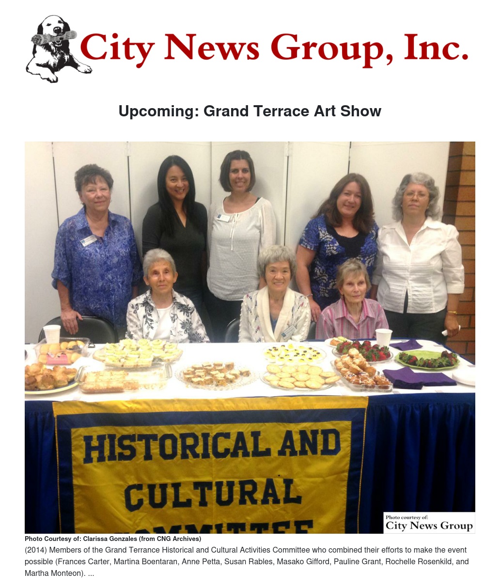 Save the Date! The annual Grand Terrace Art Show, sponsored by the Grand Terrace Historical and Cultural Activities Committee, will be back in town next month.