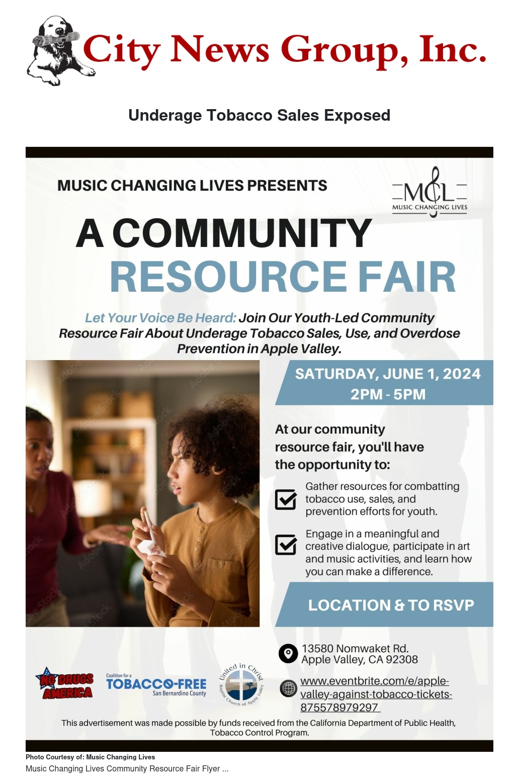 In a bold move to amplify youth voices and confront the realities of underage tobacco sales, Music Changing Lives (MCL) and the California Health Collaborative - San Bernardino County Tobacco Control Program (CHC - SBCTCP) are gearing up for their Youth-Led Community Resource Fair happening on June 1, 2024. This event, slated to take place from 2:00pm - 5:00pm at the United In Christ Baptist Church, marks a significant milestone in the fight against underage tobacco consumption.