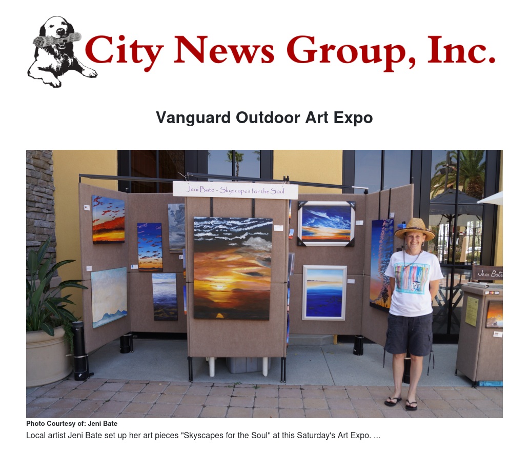 The first artist to set up for the day was Jeni Bate. This Southern California resident of over twenty-five years has a specific interest in painting the sky. Her set of pieces she showcased were called "Skyscapes for the Soul".