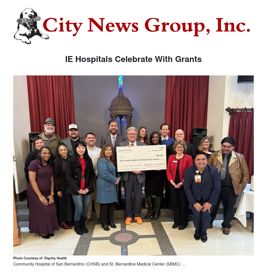 IE Hospitals Celebrate With Grants by Ruby Stephenson - City News Group, Inc.