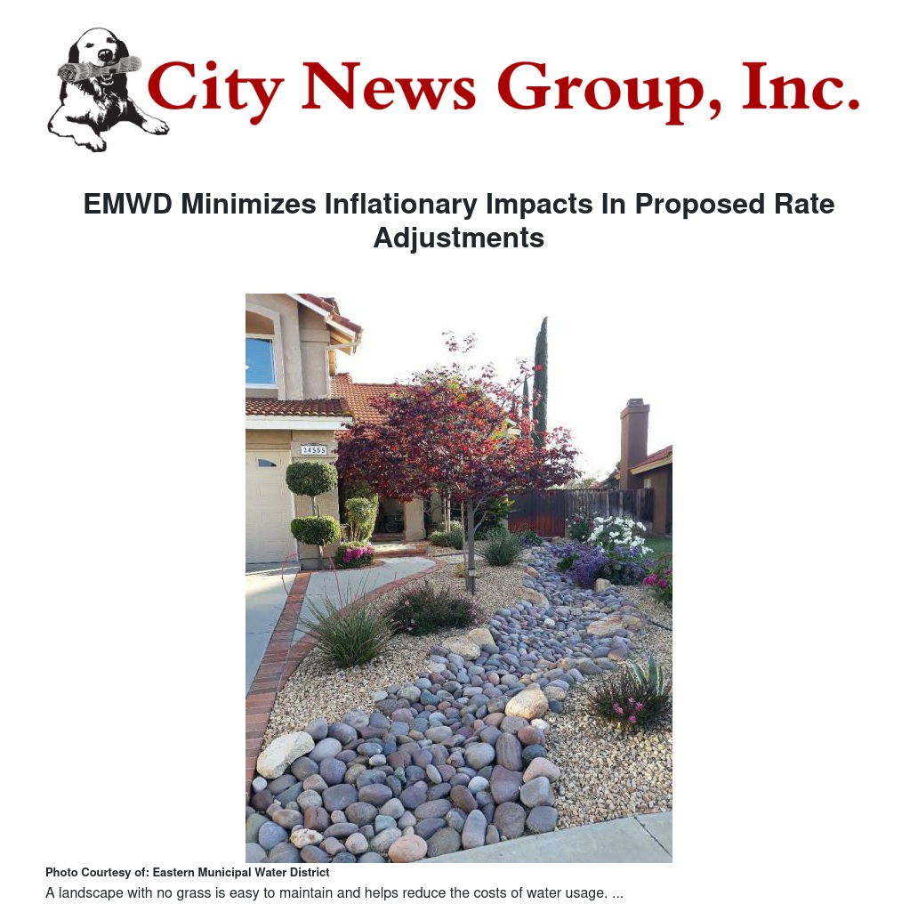 EMWD Minimizes Inflationary Impacts In Proposed Rate Adjustments by Alex Turner - City News Group, Inc.