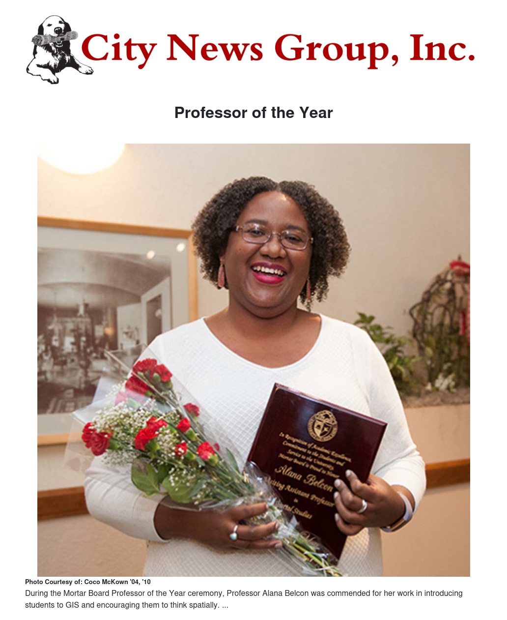 “Professor Belcon developed an idea for a first-year academic experience, where students were immersed in the world of GIS and were able to bond with other students in their cohort,” said Liran Koropitzer ’19 at the February 13 event, before reading testimonials from Belcon’s students.