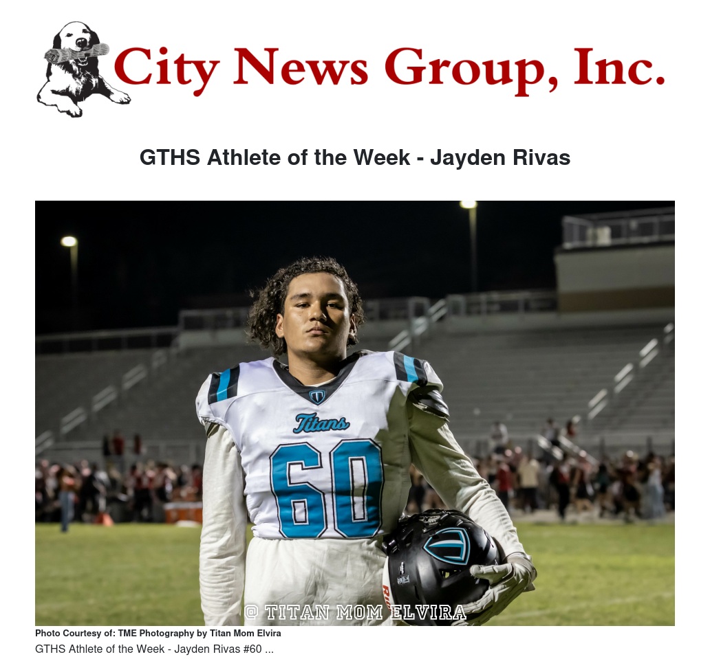GTHS Athlete of the Week - Jayden Rivas by Titan Mom Elvira - City News Group, Inc.