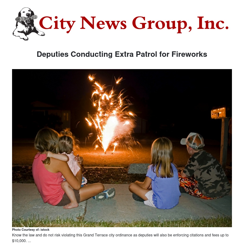 With areas of the City of Grand Terrace at a higher fire hazard risk, it is imperative to follow the guidelines of the city and county of San Bernardino so that all residents have a safe and wonderful Fourth of July.