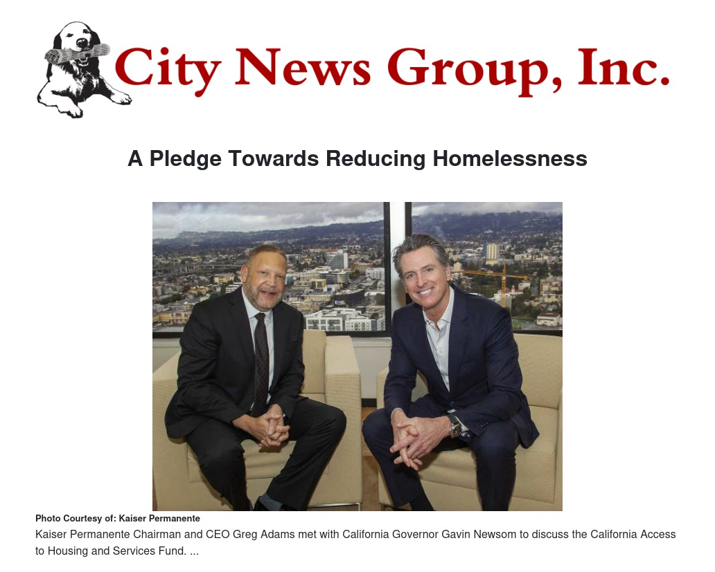“Chronic homelessness has been shown to cut 27 years from the average life span and is associated with communicable diseases such as hepatitis and typhus, increased hospitalizations, and frequent read missions,” said Kaiser Permanente Chairman and CEO Greg Adams. “Safe and stable housing is key to a person’s physical, mental and social health, so we applaud the governor’s plan to address homelessness. Our investment in the fund aligns with Kaiser Permanente’s overall strategy to preserve affordable housing and prevent displacement of existing residents, while addressing the root causes of homelessness in our communities.”