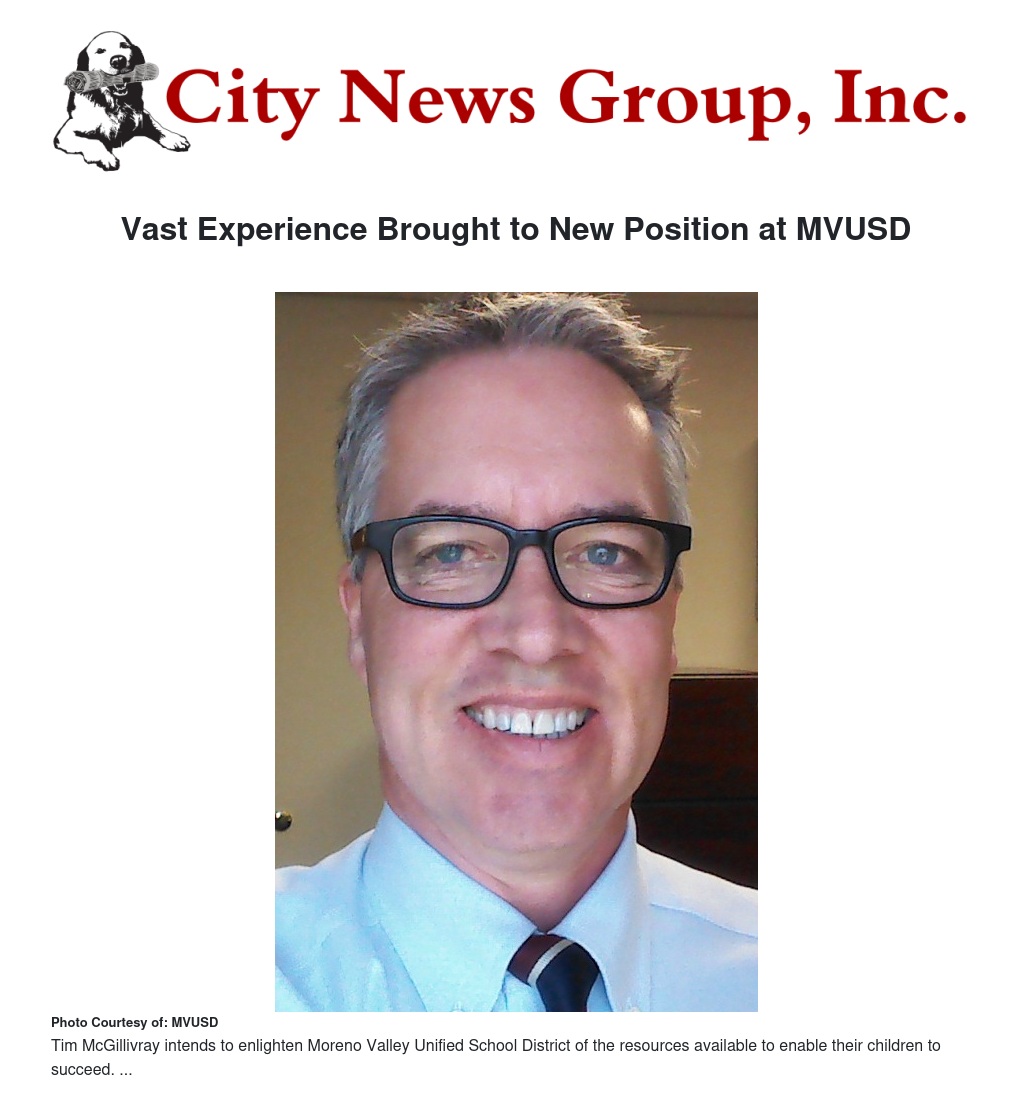 The Moreno Valley Unified School District has hired Tim McGillivray as Public Information Officer (PIO) and believe he will be a great addition to the team in the superintendent’s office. McGillivray comes to the new position with more than 30 years of experience in the field of communications and public information.