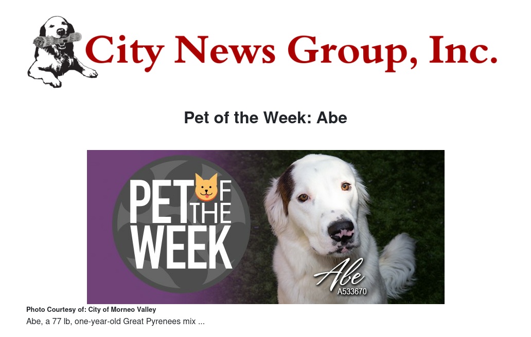Pet of the Week: Abe by Ruby Stephenson - City News Group, Inc.