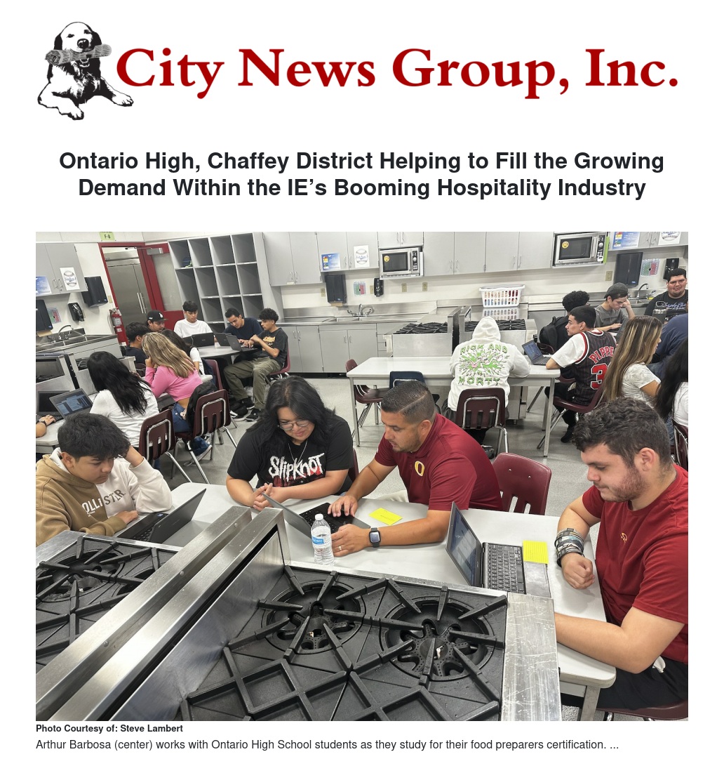 Ontario High, Chaffey District Helping to Fill the Growing Demand Within the IE’s Booming Hospitality Industry by Steve Lambert - City News Group, Inc.