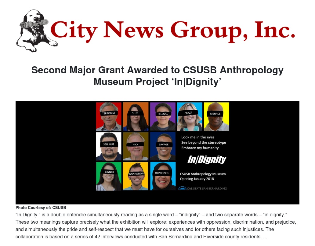 “In|Dignity ” is a double entendre simultaneously reading as a single word – “indignity” – and two separate words – “in dignity.” These two meanings capture precisely what the exhibition will explore: experiences with oppression, discrimination, and prejudice, and simultaneously the pride and self-respect that we must have for ourselves and for others facing such injustices. The collaboration is based on a series of 42 interviews conducted with San Bernardino and Riverside county residents.