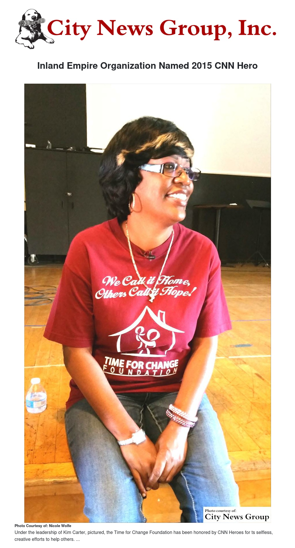 On Aug. 27, Time for Change Foundation (TFCF), under the leadership of Kim Carter, was named a 2015 CNN Hero.