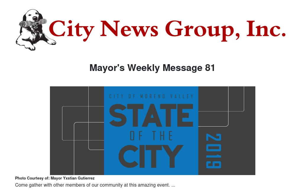Mayor's Weekly Message 81 by Mayor Yxstian Gutierrez - City News Group, Inc.