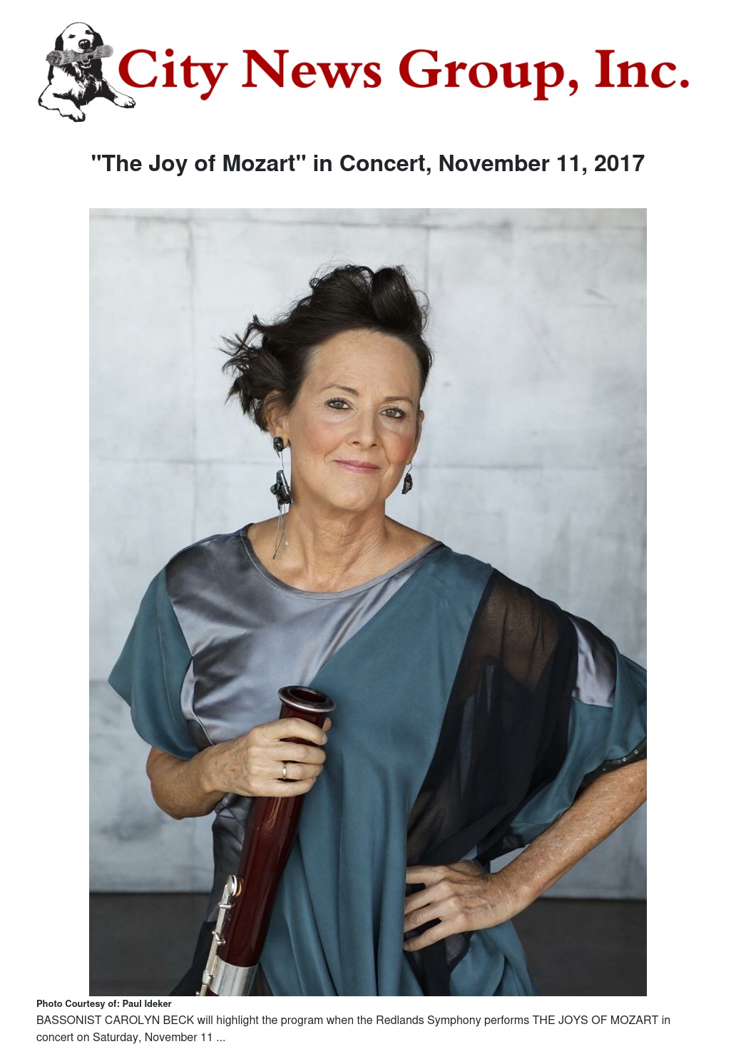 The evening’s program includes Symphony No. 24 in B-flat major, K. 182, Basson Concerto, K. 191, performed by the orchestra’s Principal Basson, CAROLYN BECK, Eine kleine Nachtmusik, K 525 and Symphony No. 29 in A major, K. 201.