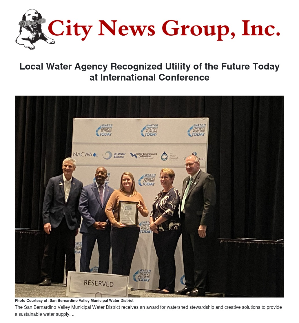 Local Water Agency Recognized Utility of the Future Today at International Conference by Deborah Luna - City News Group, Inc.