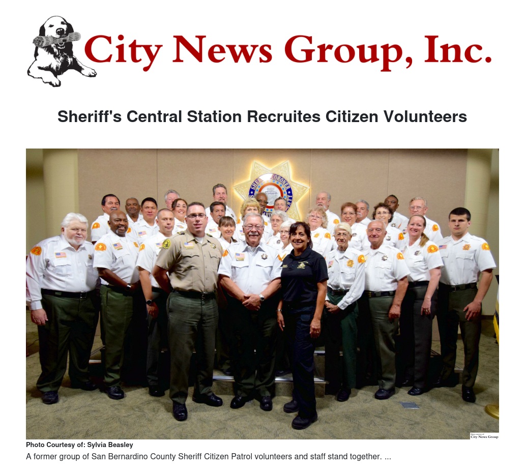 SAN BERNARDINO>> The San Bernardino County Sheriff's Department's Central Station, which serves the communities of Grand Terrace, Loma Linda and the County areas of San Bernardino, is currently recruiting volunteers over the age or 18 to join their Citizens on Patrol unit.