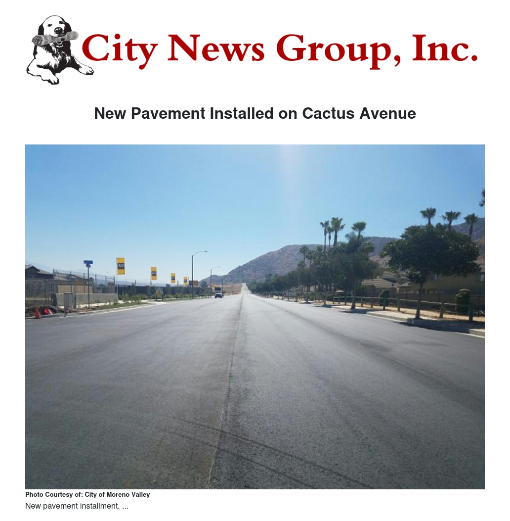 New Pavement Installed on Cactus Avenue by City of Moreno Valley - City News Group, Inc.