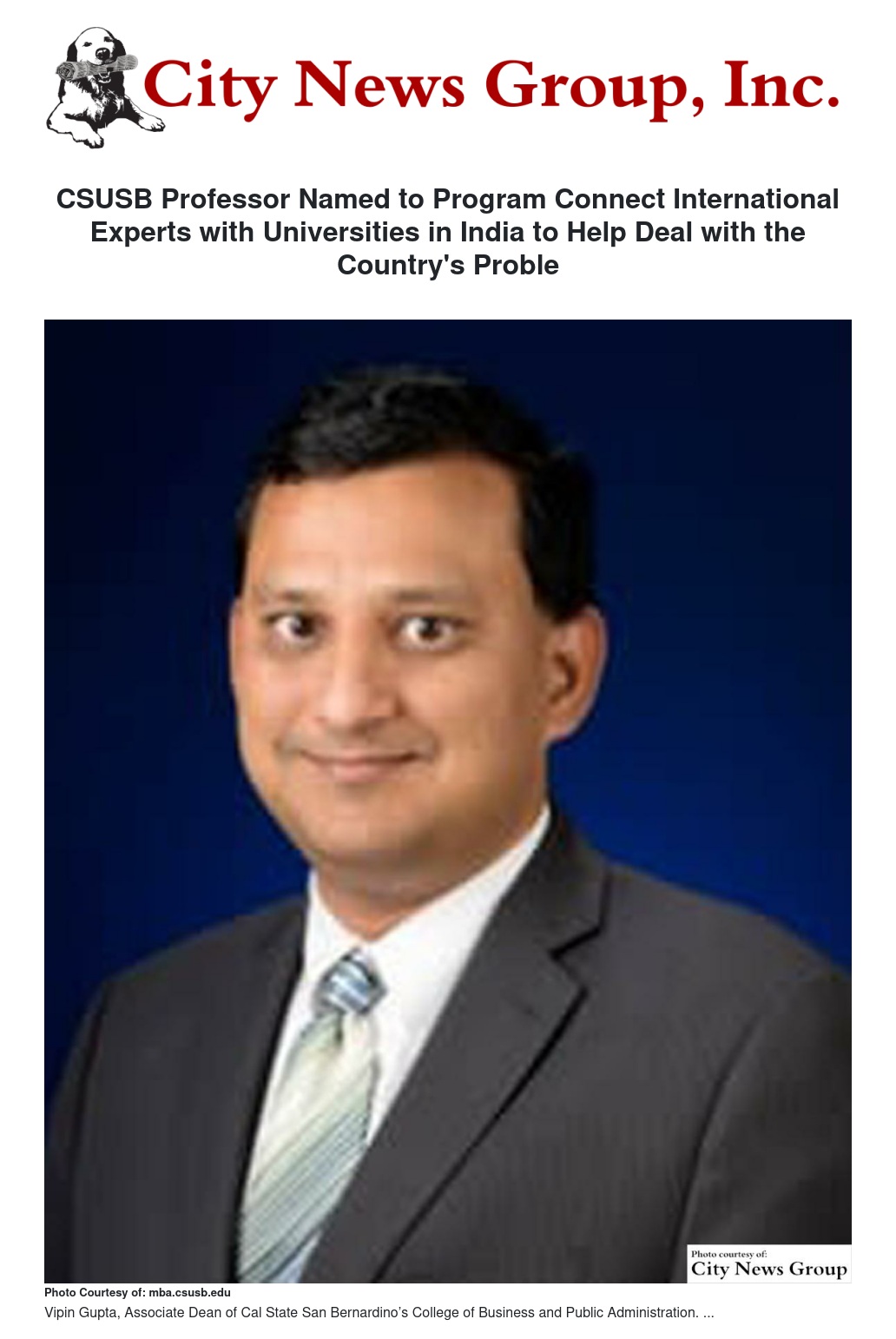 SAN BERNARDINO >> Vipin Gupta, the associate dean of Cal State San Bernardino’s College of Business and Public Administration, has been named by the government of India to an inaugural initiative to connect international scholars, industrialists and entrepreneurs with universities in India to help improve the country’s quality of life.