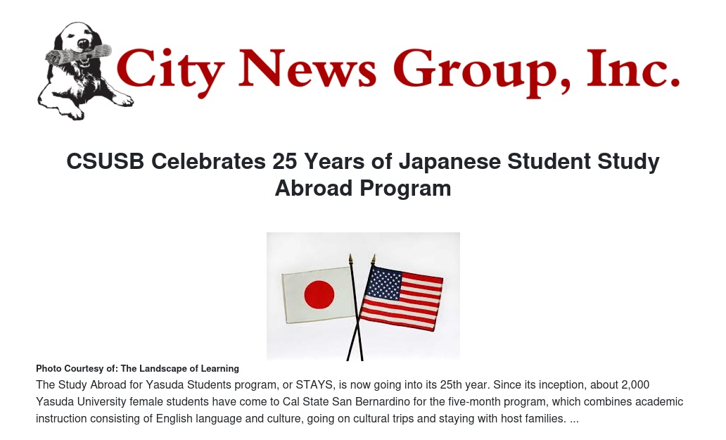 Since its inception, about 2,000 Yasuda University female students have come to Cal State San Bernardino for the five-month program, which combines academic instruction consisting of English language and culture, going on cultural trips and staying with host families.
