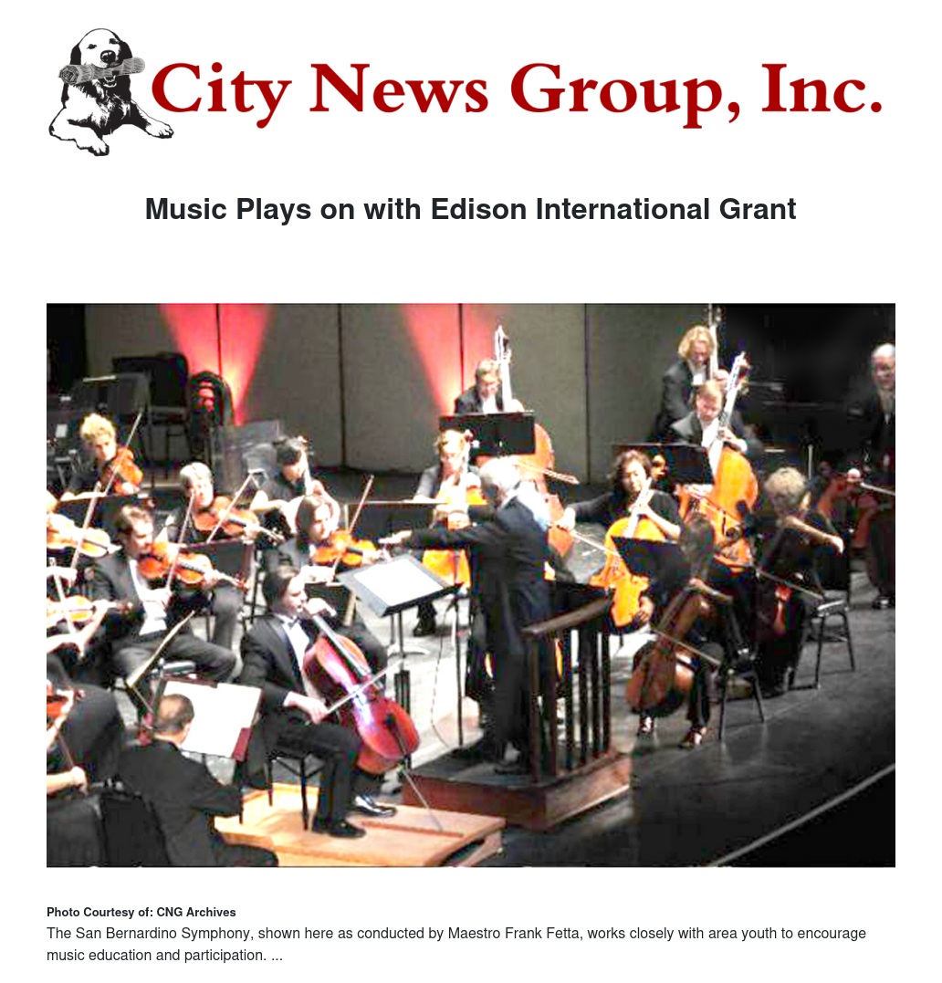 The San Bernardino Symphony has received a $5,000 community grant from Edison International to sponsor the group's teen music enrichment programs.