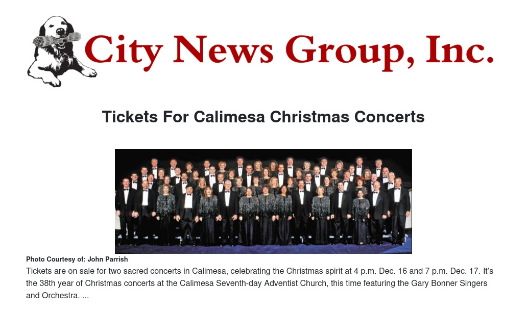 Tickets For Calimesa Christmas Concerts by John Parrish - City News Group, Inc.