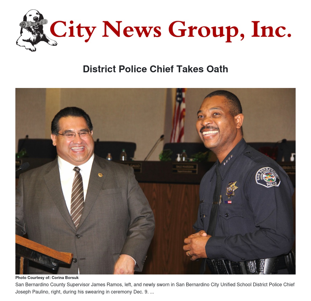 Joseph Paulino was sworn in as the San Bernardino City Unified School District (SBCUSD) Police Department's chief of police during a special district ceremony held at the National Orange Show.