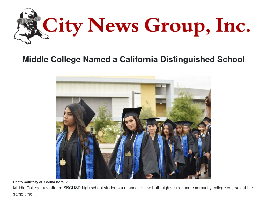 San Bernardino City Unified School District’s Middle College High School (MCHS) has been named a California Distinguished School.