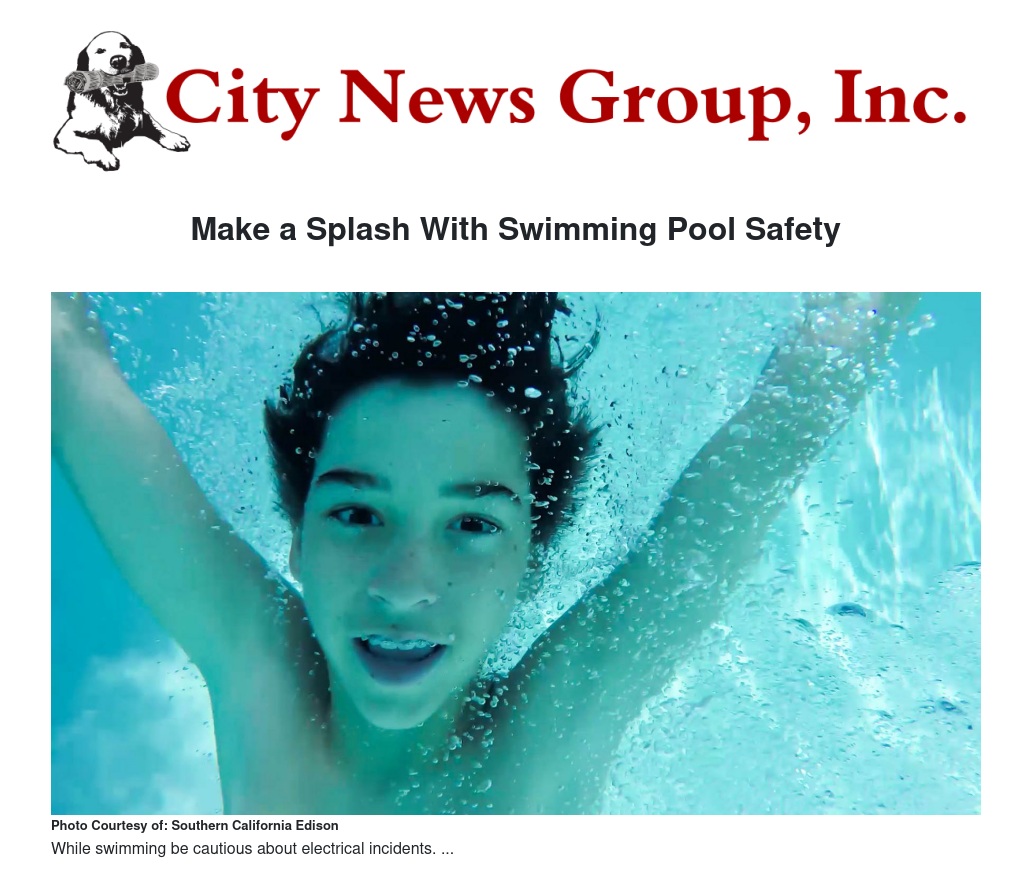 “Annual inspections by licensed electricians or pool contractors are paramount when it comes to electrical safety in swimming pools,” said Paul Jeske, Southern California Edison’s director of Corporate Health and Safety. “Electrical inspections should never be done by pool owners or cleaning crews.”