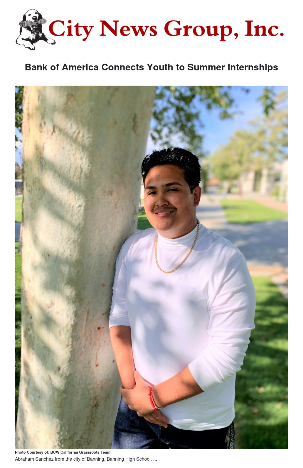 Bank of America today announced four high school juniors and seniors were selected as Bank of America Student Leaders, an eight-week summer internship providing students with first-hand experience in serving their communities. These students are working with local nonprofits Riverside Art Museum, Making Hope Happen, Hope Through Housing and Boys and Girls Clubs of the San Gorgonio Pass, earning $17 per hour. They also receive a Chromebook and will have the option to voluntarily participate in in-person activities as part of the internship.