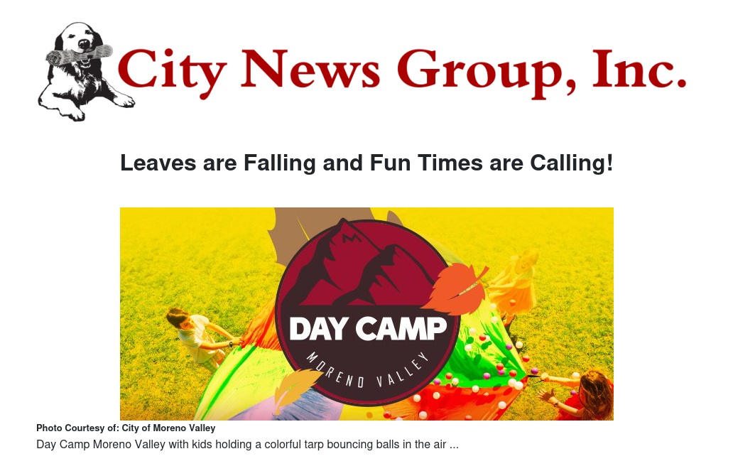 The City of Moreno Valley Parks and Community Services Department is pleased to announce the return of Valley Day Camps.