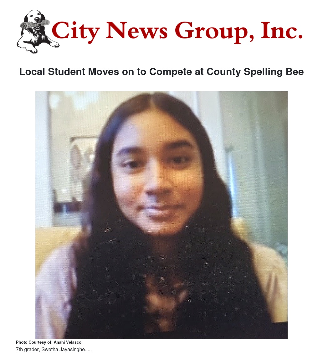 Local Student Moves on to Compete at County Spelling Bee by Anahi Velasco - City News Group, Inc.