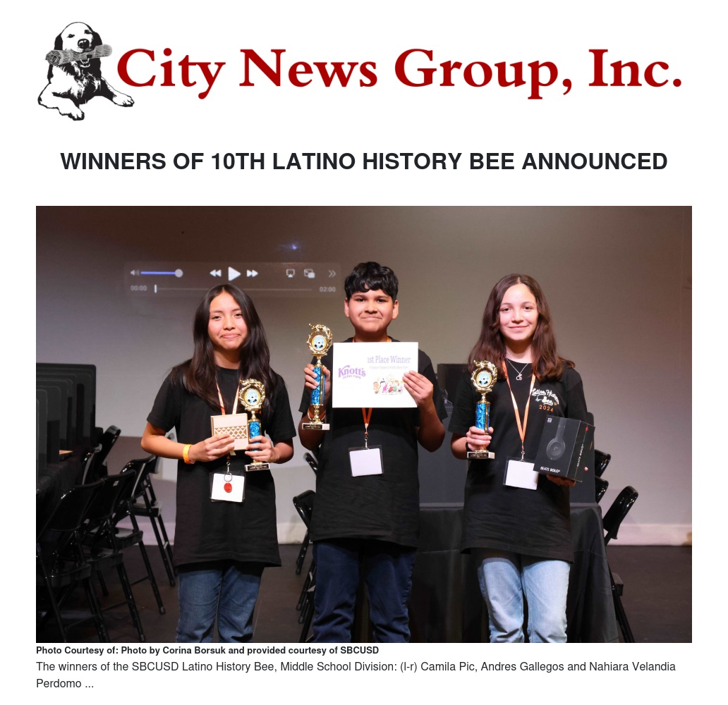 WINNERS OF 10TH LATINO HISTORY BEE ANNOUNCED by Stella Pierce - City News Group, Inc.