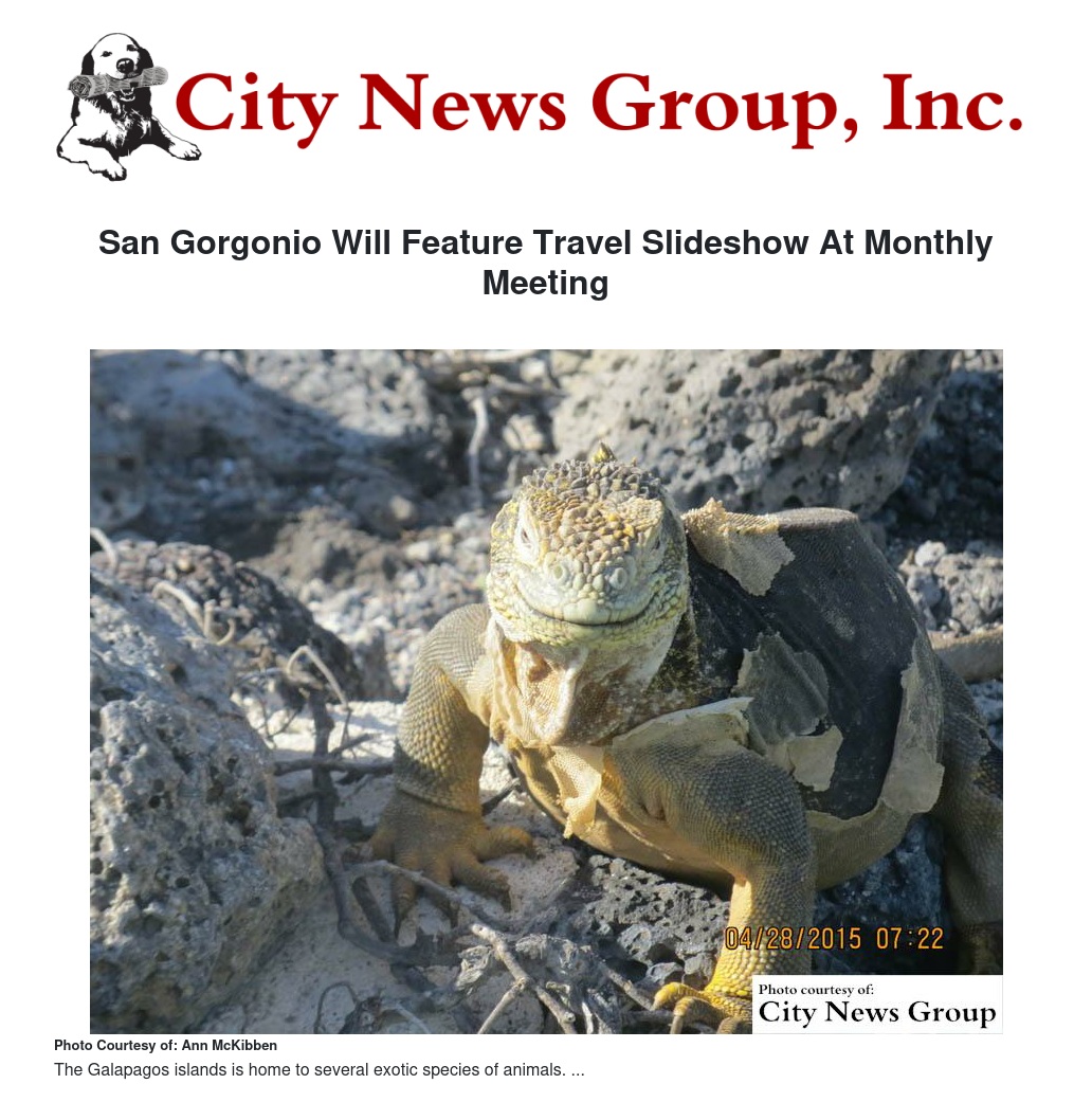 On Tuesday Sept. 1, the San Gorgonio Chapter of the Sierra Club will have their monthly meeting at the San Bernardino County Museum, 2024 Orange Tree Lane, Redlands at 7:30 p.m. All are welcome to join as Mike and Jan Millspaugh show pictures of their trip to “Costa Rica and Ecuador, Including the Galapagos Islands."