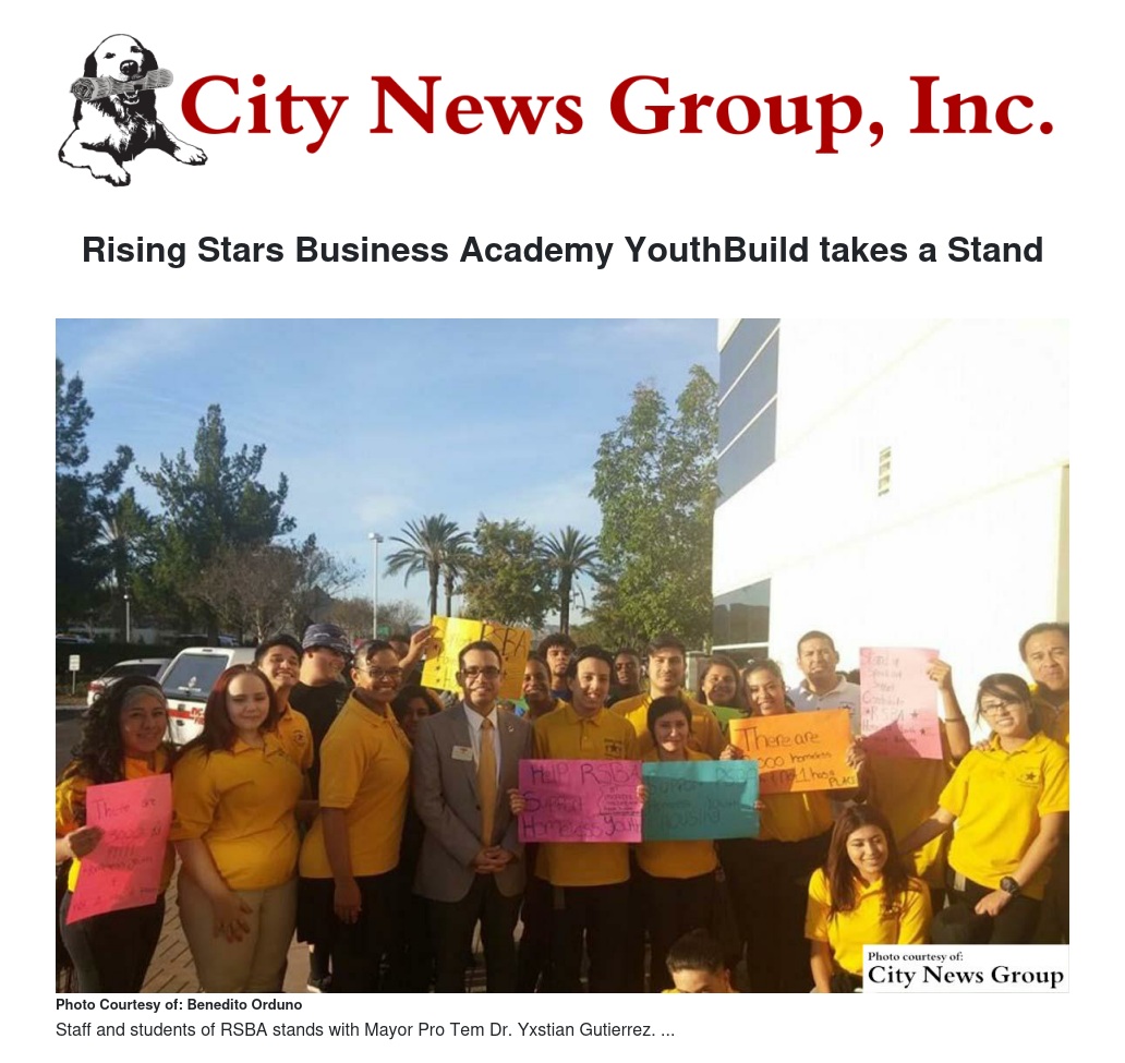 Rising Stars Business Academy YouthBuild encountered recently came across a problem that many youth face in the city of Moreno Valley - homelessness.