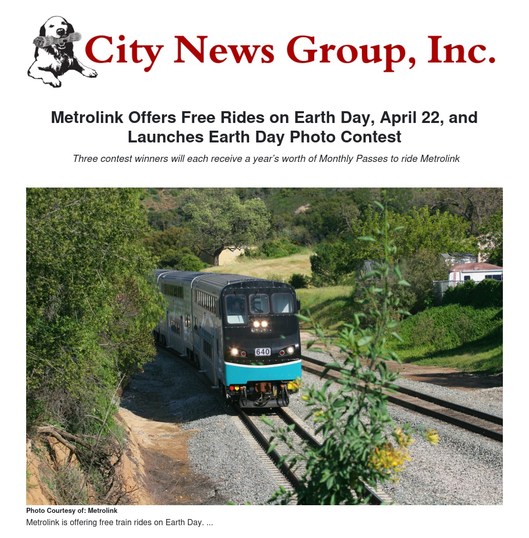 Metrolink Offers Free Rides on Earth Day, April 22, and Launches Earth Day Photo Contest by Dianna Baskin - City News Group, Inc.