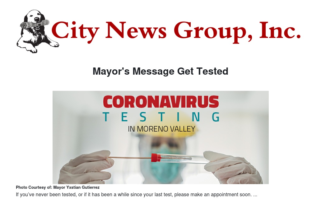 Mayor's Message Get Tested by Mayor Yxstian Gutierrez - City News Group, Inc.