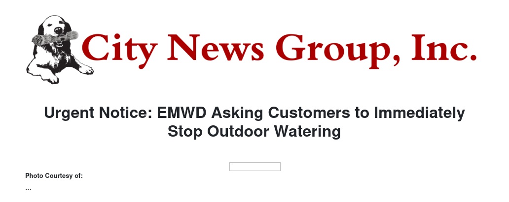 Urgent Notice: EMWD Asking Customers to Immediately Stop Outdoor Watering