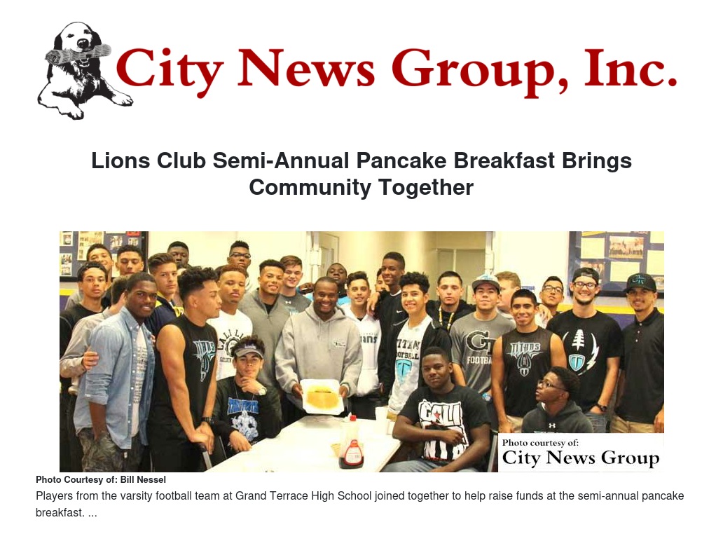 With attendance doubled, the Lions Club Pancake Chairman, Steven Barton, added, “It went well. It was a great collaboration between the Grand Terrace Lions Club and Grand Terrace High School Football team. The kids are having a great time! I know they appreciated everyone who came out and supported the event.”