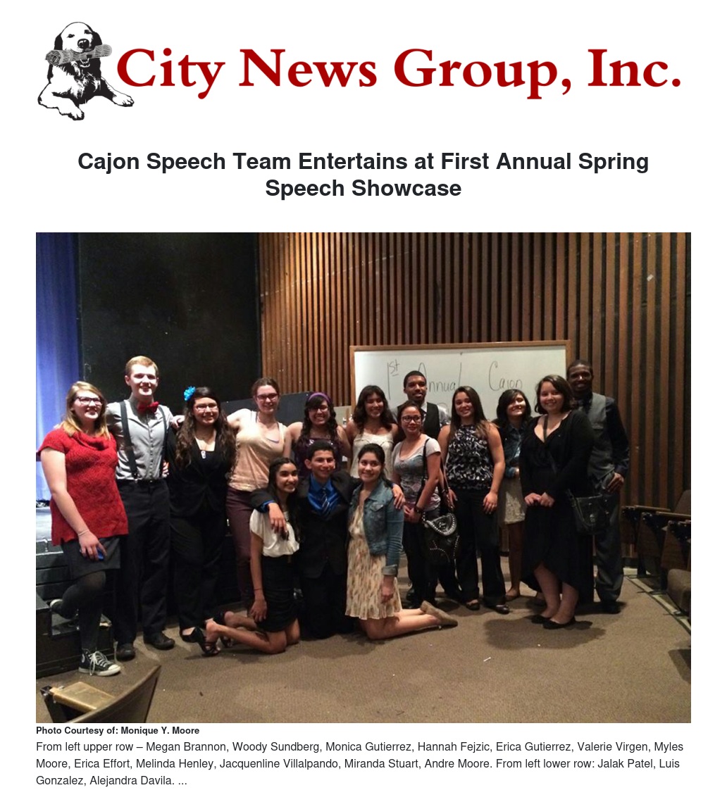 Cajon Speech Team Entertains at First Annual Spring Speech Showcase