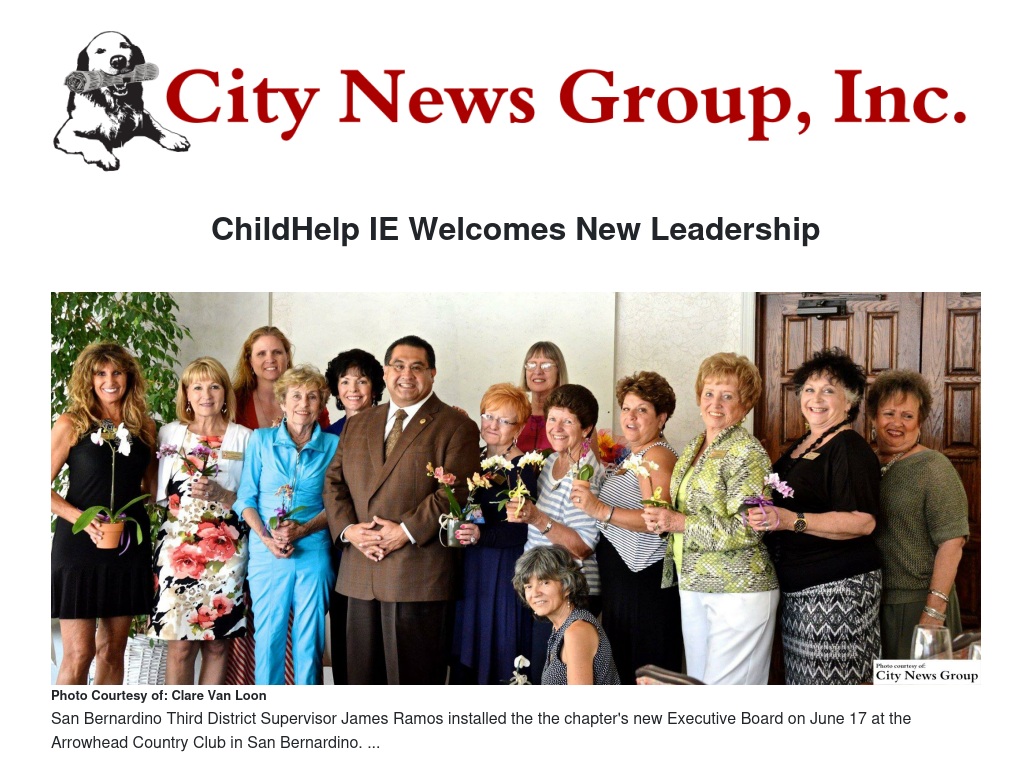 The Inland Empire Chapter of Childhelp installed their 2015-2016 Executive Board on Wednesday, June 17, at the Arrowhead Country Club in San Bernardino. Special guest San Bernardino County Board of Supervisors Chairman James Ramos, who is also the San Bernardino County Third District Supervisor, performed the installation. "I am very thankful Childhelp invited me to be a part of their Installation Ceremony," said Chairman Ramos. "Childhelp is a great organization that is dedicated to helping children who suffer from abuse and neglect."