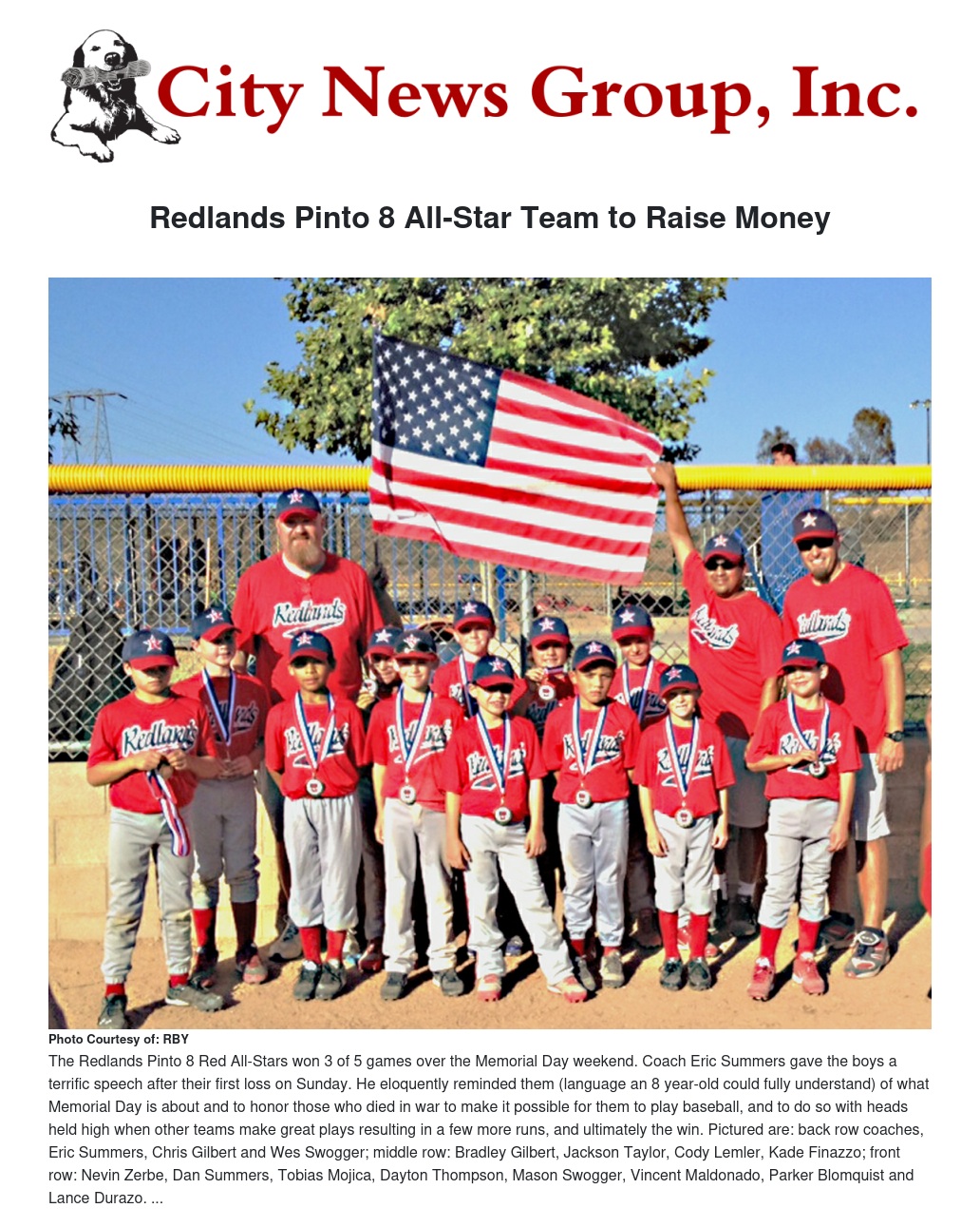 Without the support of the local community, we would be unable to reach the financial requirements to provide the Pinto 8 Red All-Star team players with the quality baseball program necessary for success.