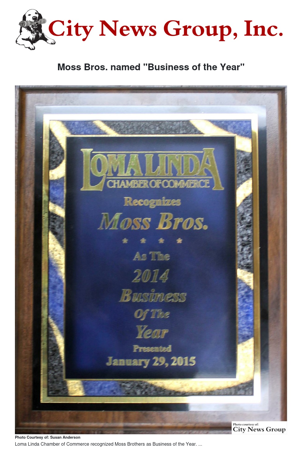 Moss Bros. named "Business of the Year"