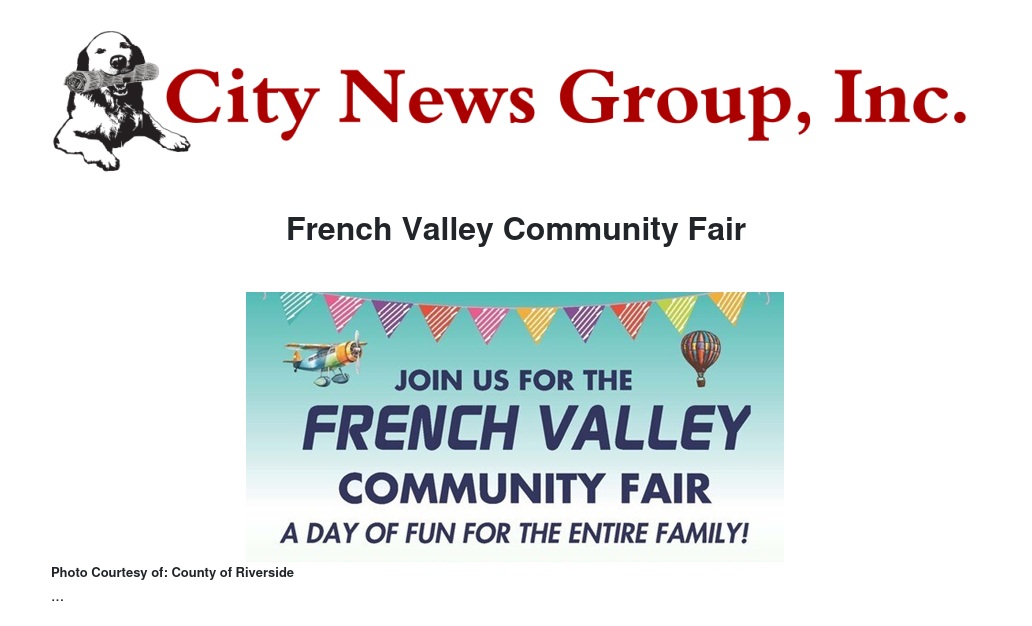 The French Valley Community Fair will feature game booths, food trucks, bouncers, community resources, music and so much more. Free hot dogs will be provided to the first 100 attendees!